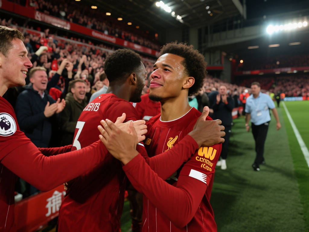 阿诺德的告别之夜:安菲尔德见证热泪与拥抱 一场感人至深的足球之夜,安菲尔德上空的每一声欢呼与泪水都成为了记忆的注脚。这位利物浦青训营的代表人物,阿诺德,在主场球迷的注视下与队友深情告别,这不仅是一个